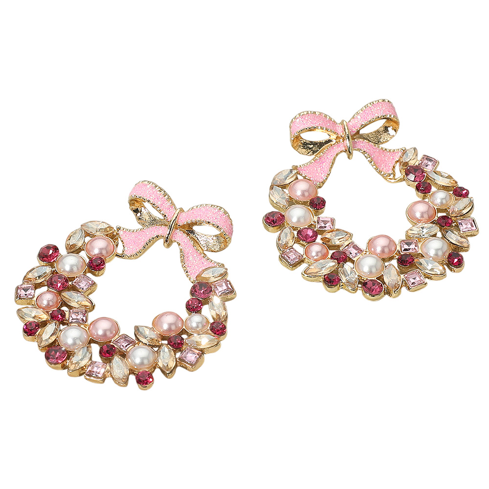 • Celebrate the season with these Christmas wreath earrings, featuring sparkling gems, pearl accents, and a glittering bow detail. A cheerful holiday accessory that adds festive charm to your outfit, perfect for parties, gatherings, and seasonal celebrations.