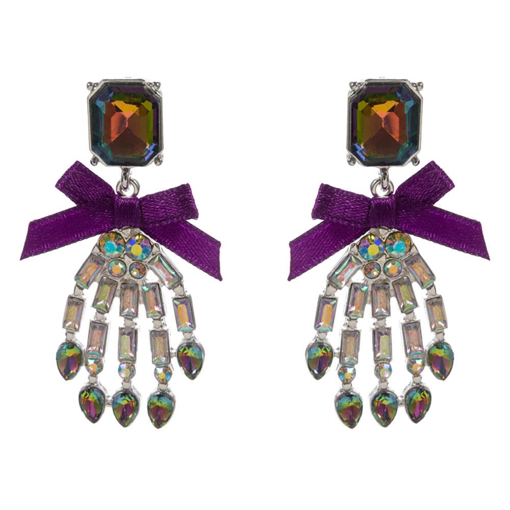 Bow Accent Glass Stone Skeleton Hand Dangle Earrings