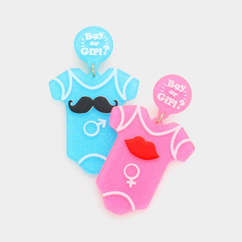 Boy or Girl Message Glittered Baby Bodysuit Dangle Earrings