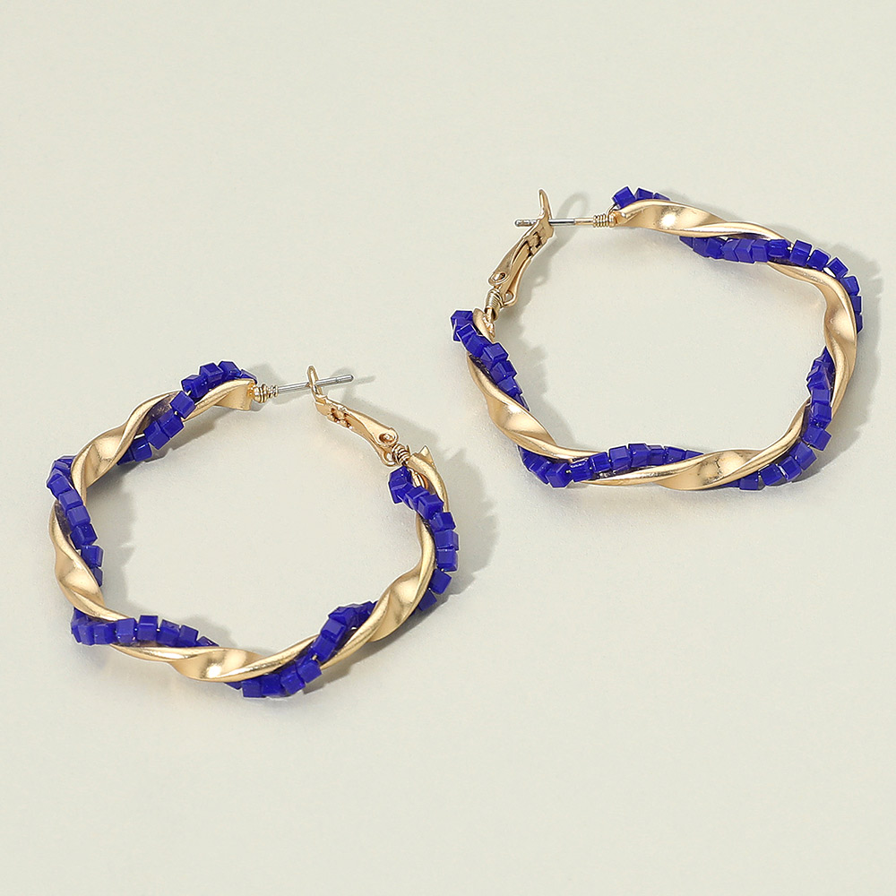 Braided Cube Beaded Twisted Metal Hoop Earrings Braided Cube Beaded Twisted Metal Hoop Earrings