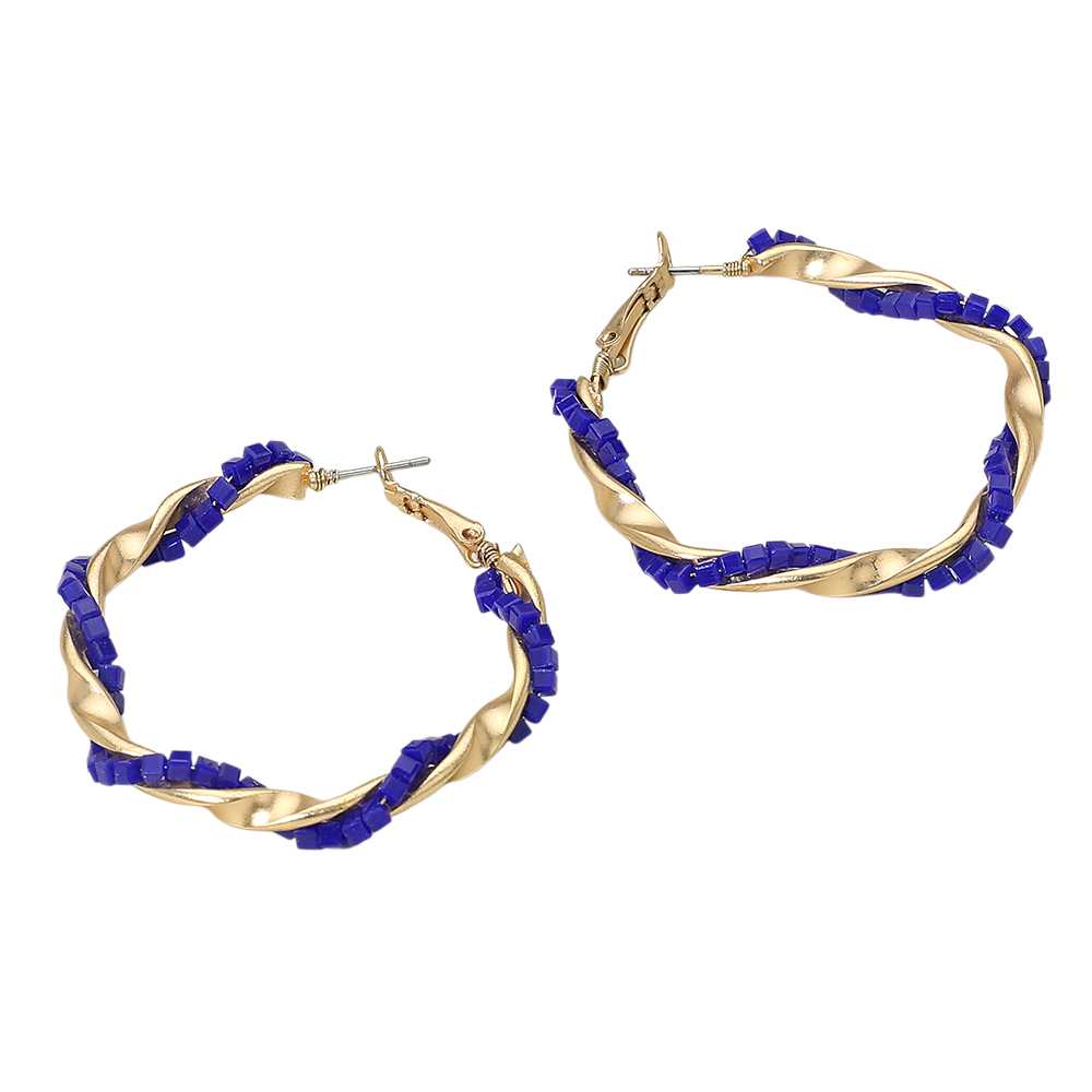 Braided Cube Beaded Twisted Metal Hoop Earrings