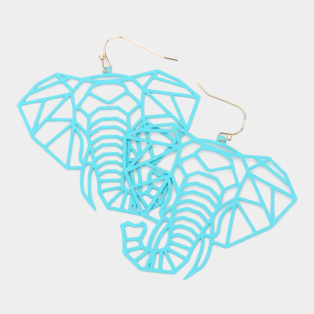 Brass Metal Cutout Elephant Dangle Earrings