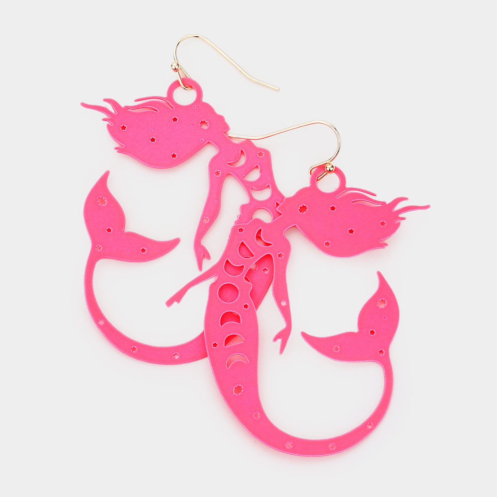 Brass Metal Cutout Mermaid Dangle Earrings