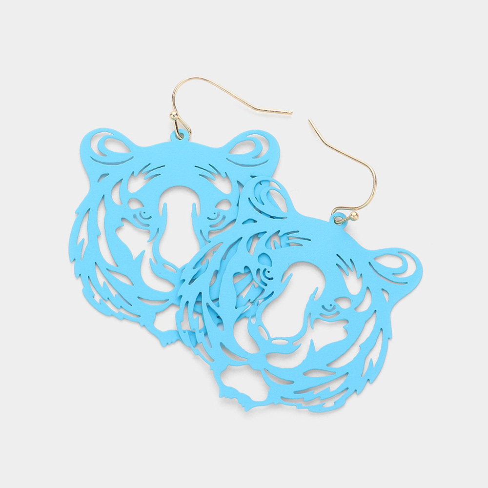• Make a fierce fashion statement with these bold tiger face cutout earrings featuring an intricate design and lightweight style. Perfect for parties, everyday wear, or gifting, these earrings add a touch of wild elegance to any outfit.