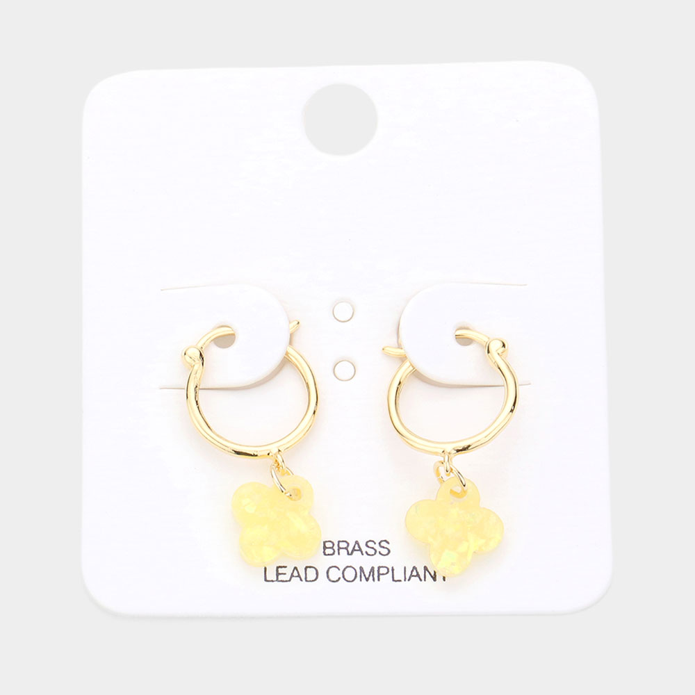 Brass Metal Hoop Quatrefoil Dangle Pin Catch Earrings
