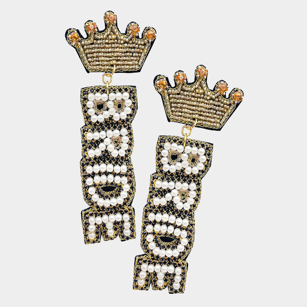 BRIDE Felt Back Pearl Rhinestone Message Dangle Earrings