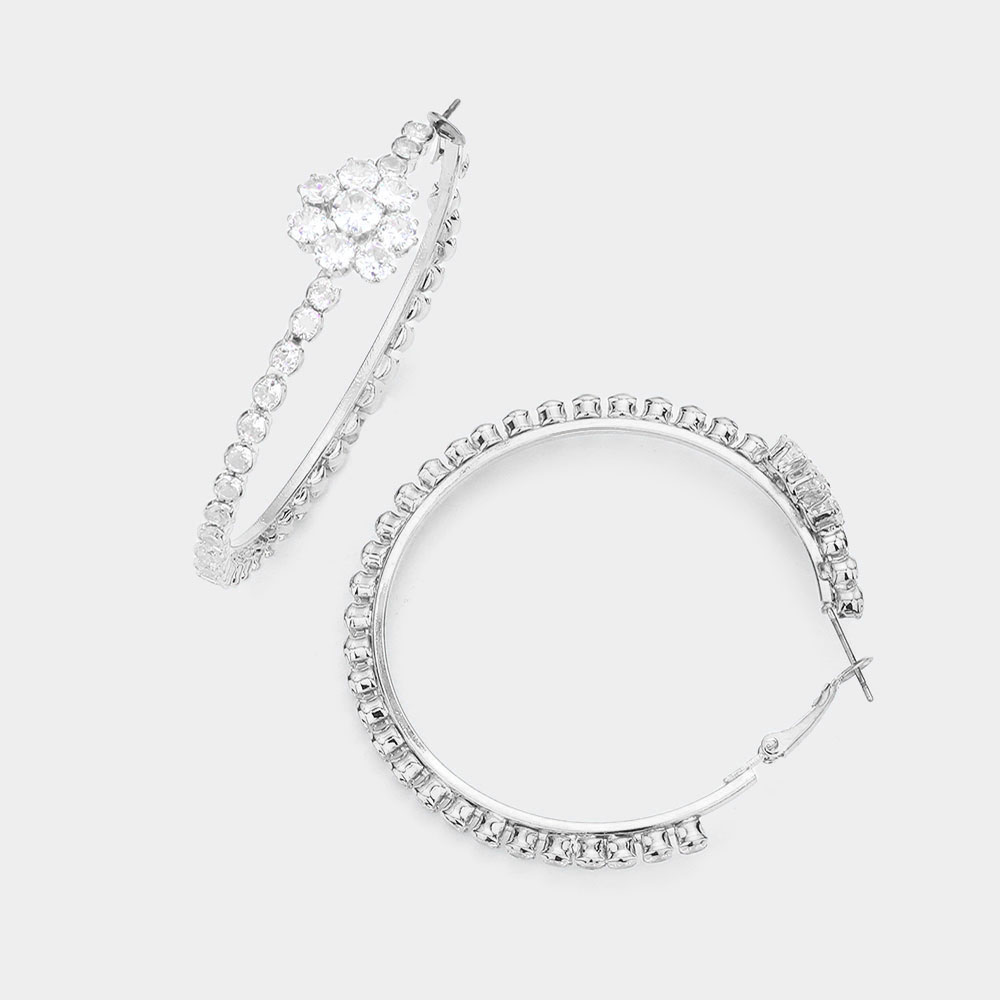 Bubble Stone Flower Accented Hoop Earrings