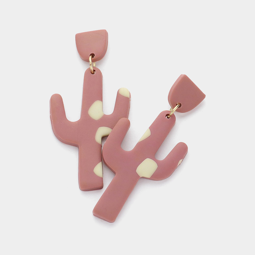 Beaded Cactus Accented Teardrop Dangle Earrings
