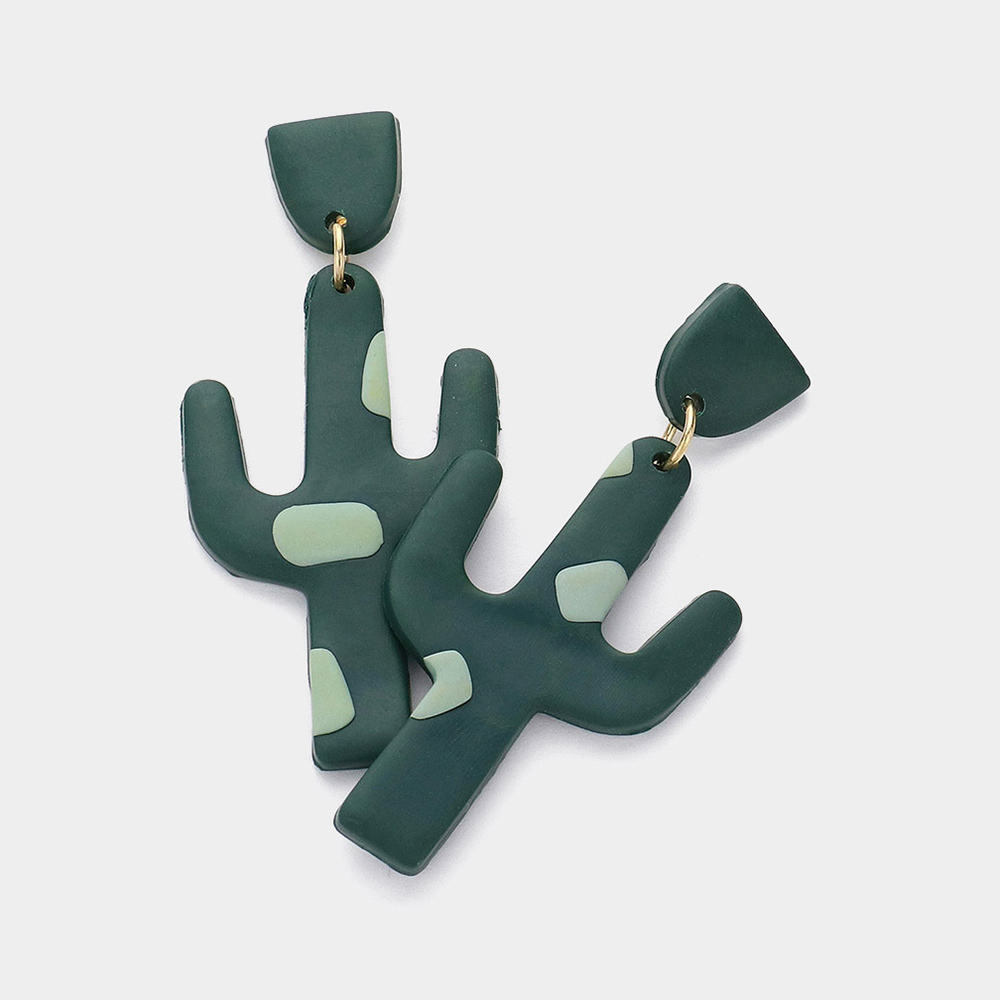 let's Fiesta! Message Felt Back Sequin Beaded Cactus Dangle Earrings