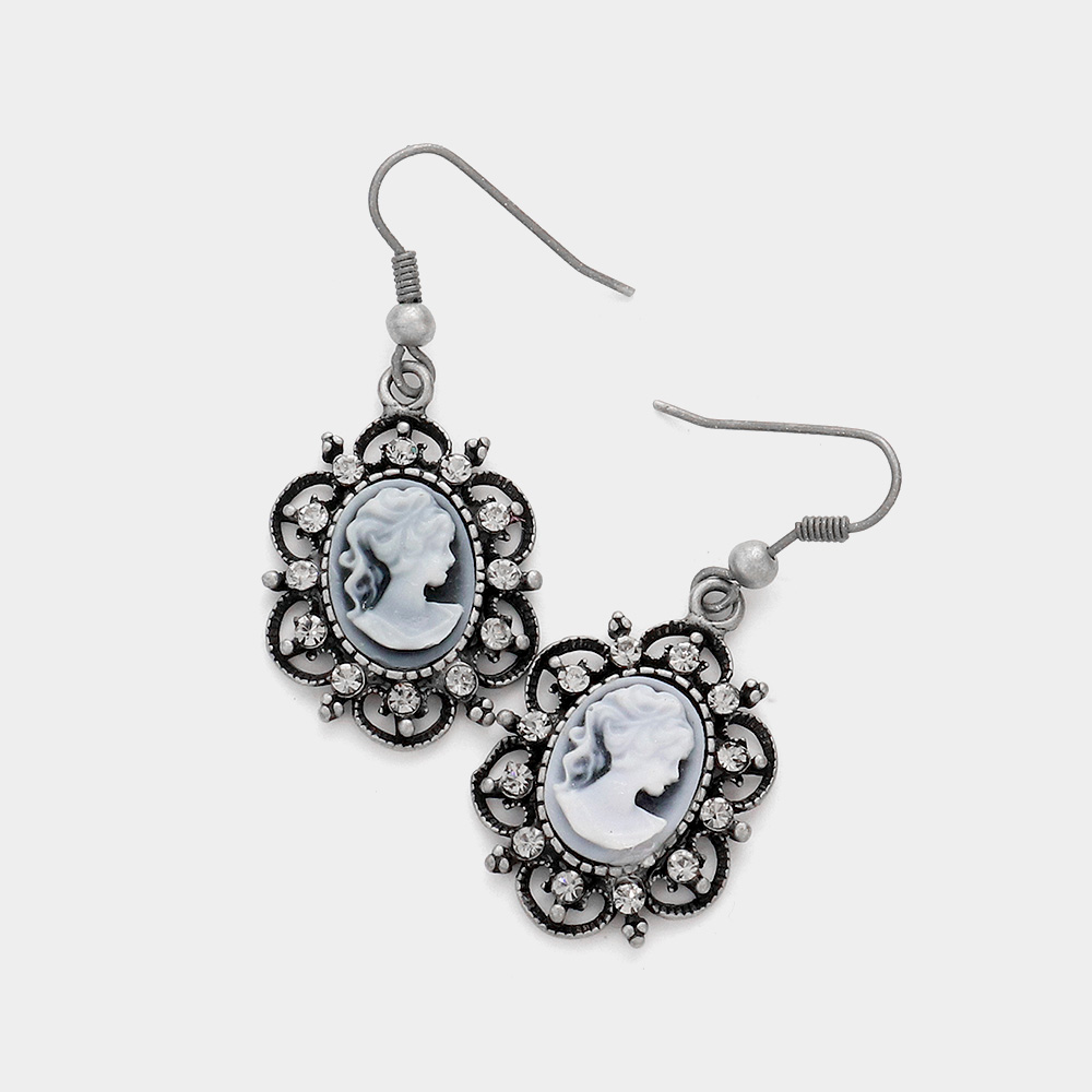 • Add timeless charm with these vintage inspired cameo drop earrings featuring an elegant oval portrait design surrounded by sparkling accents. Lightweight and refined, they are perfect for daily wear or special occasions, offering a sophisticated blend of heritage and modern elegance.