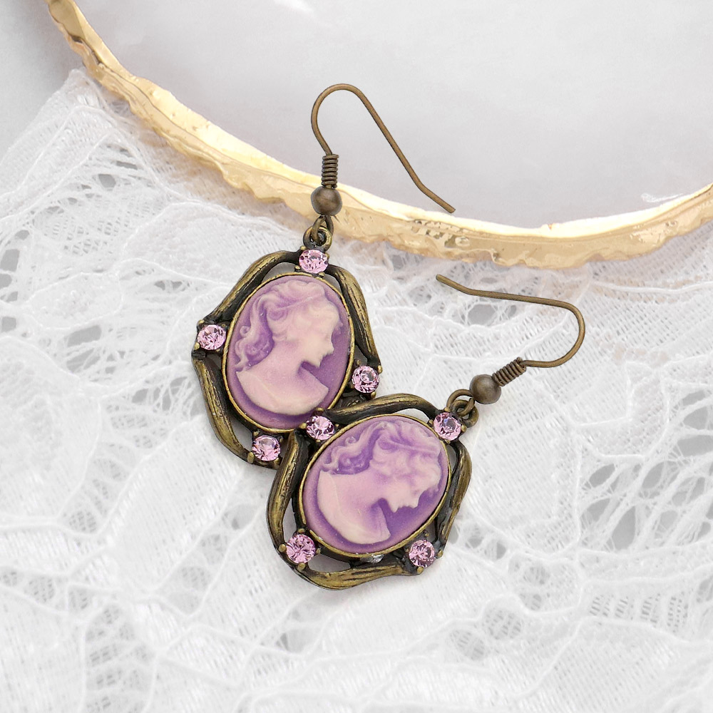 • Add timeless elegance to your collection with these vintage cameo dangle earrings. Featuring classic cameo portraits framed in a retro-inspired design, they are the perfect accessory for special occasions or everyday sophistication.