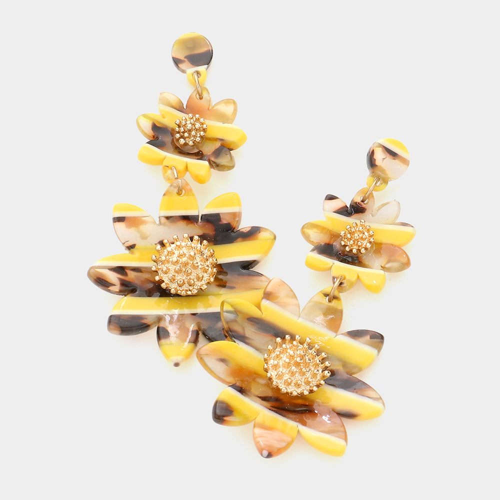 Celluloid Acetate Double Flower Link Dangle Earrings