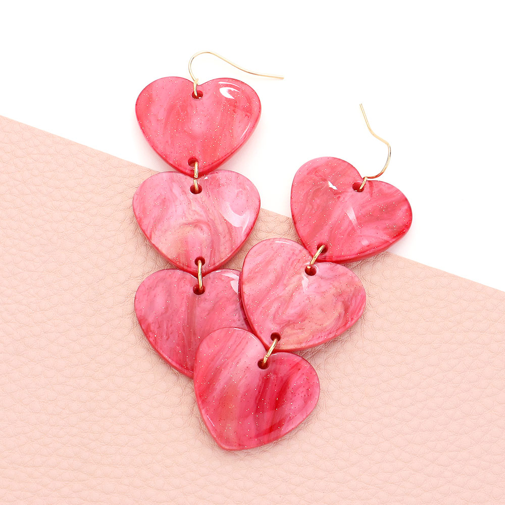 Celluloid Acetate Heart Link Dropdown Earrings