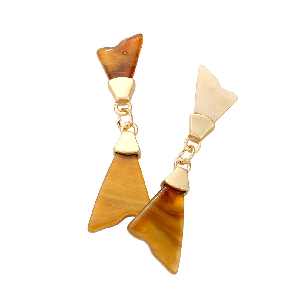 Details • Size : 0.5" X 1.75" • Post Back • Make a bold statement with these geometric drop earrings, featuring an abstract triangular design with tortoise-style accents and gold-tone connectors. Lightweight and stylish, these earrings bring a modern edge to casual and dressy outfits, perfect for adding a chic, contemporary touch. • Lead and Nickel Compliant