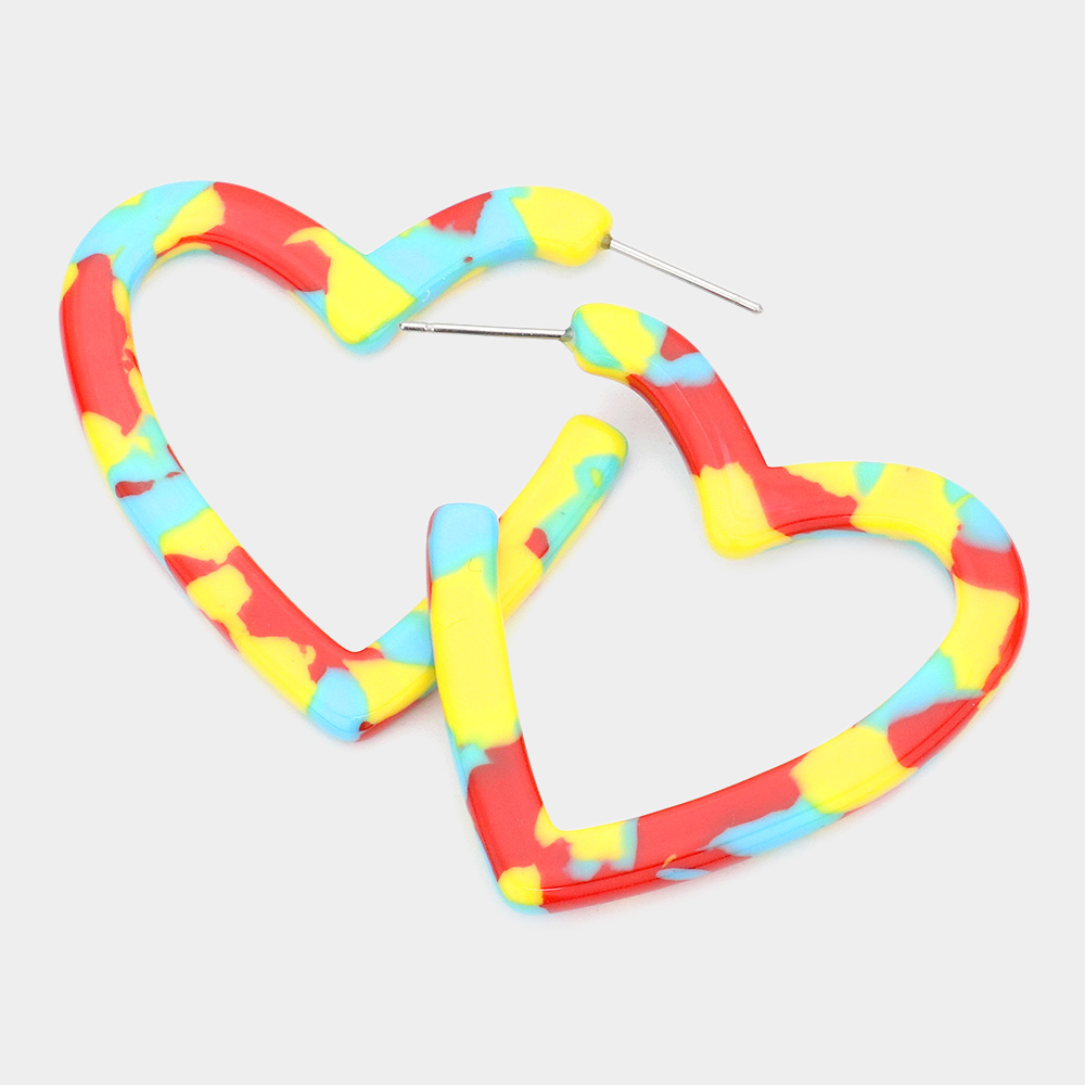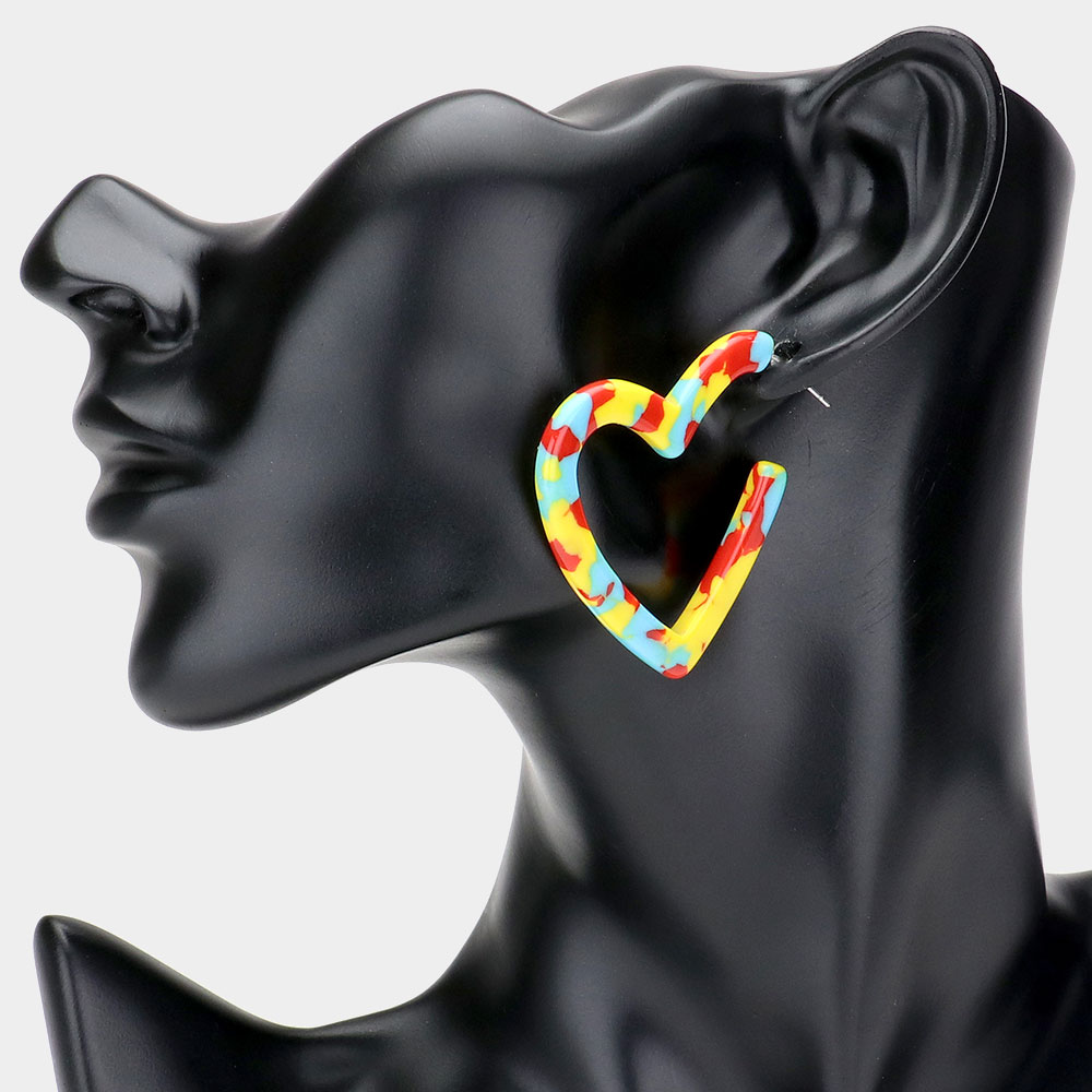Oversized Patterned Celluloid Acetate Plate Accent Doorknocker Earrings