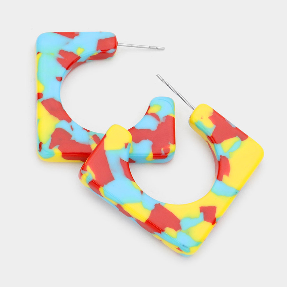 Celluloid Acetate Tortoise Heart Centered Stud Earrings