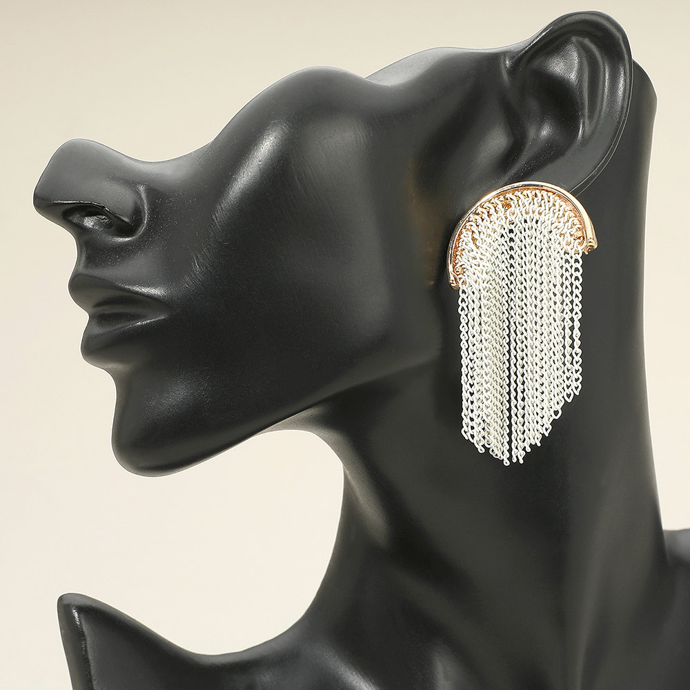 • Make a bold statement with fringe chain drop earrings, featuring cascading chains that add movement and drama to your style. Perfect for evening events or chic outfits, these earrings deliver a modern edge with an elegant touch, ensuring standout appeal in any jewelry collection.