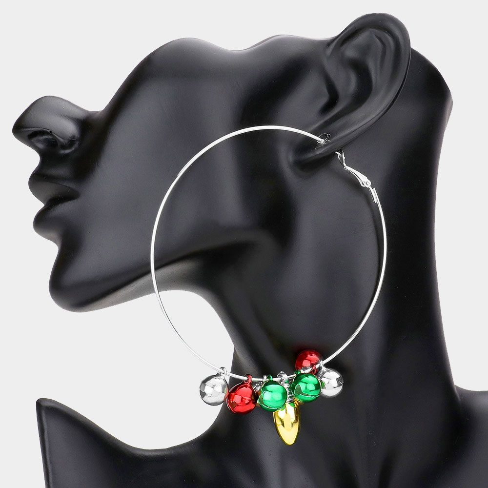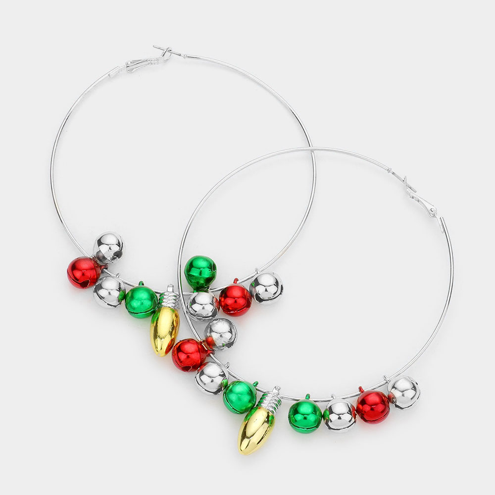 Christmas Bell Bulb Charm Metal Hoop Earrings