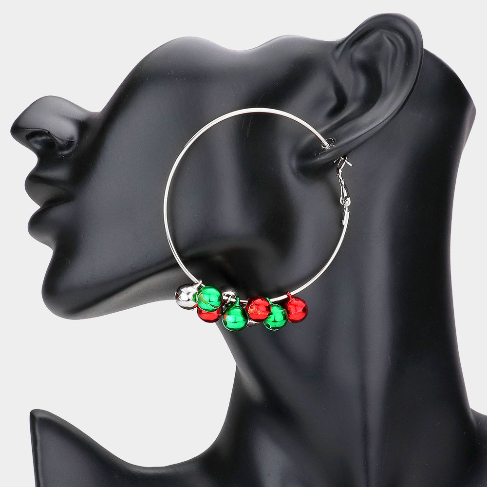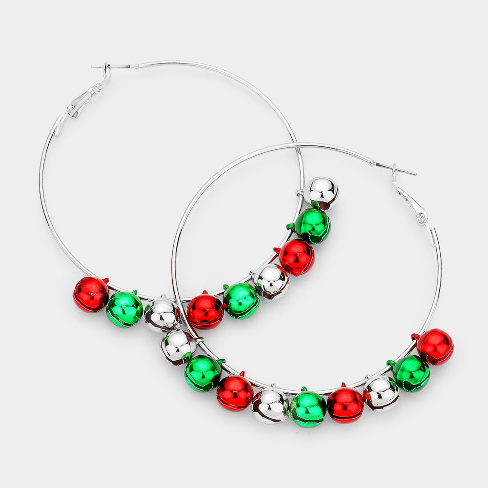 Stone Embellished Cutout Christmas House Brass Metal Round Dangle Earrings