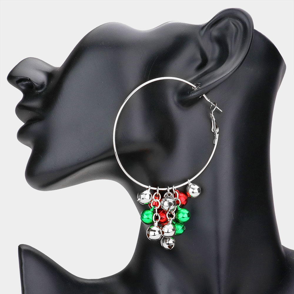 Holiday Bow Accent Cardinal Wreath Dangle Earrings