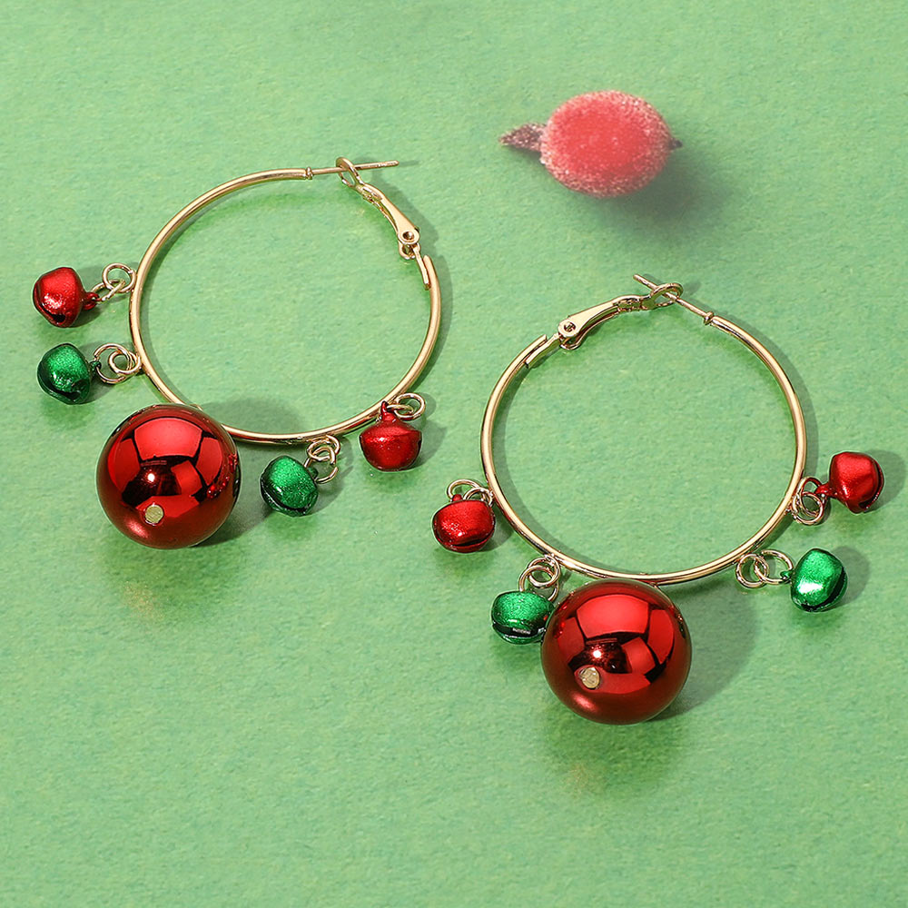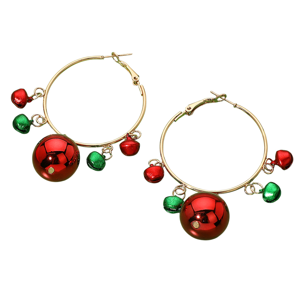 Details • Size : 1.9" X 2.75" • Omega Back • Make a bold holiday statement with these Christmas Ornament Hoop Earrings, featuring large shiny red baubles paired with smaller green and red jingle charms on sleek gold-tone hoops. Festive, fun, and full of seasonal cheer, these earrings are perfect for holiday parties, Christmas photos, or gifting to someone who loves playful and eye-catching accessories. • Christmas bauble earrings, ornament hoop earrings, holiday statement earrings, red and green earrings, festive jewelry, Christmas party accessories, holiday hoop earrings, fun Christmas gift. • Lead and Nickel Compliant