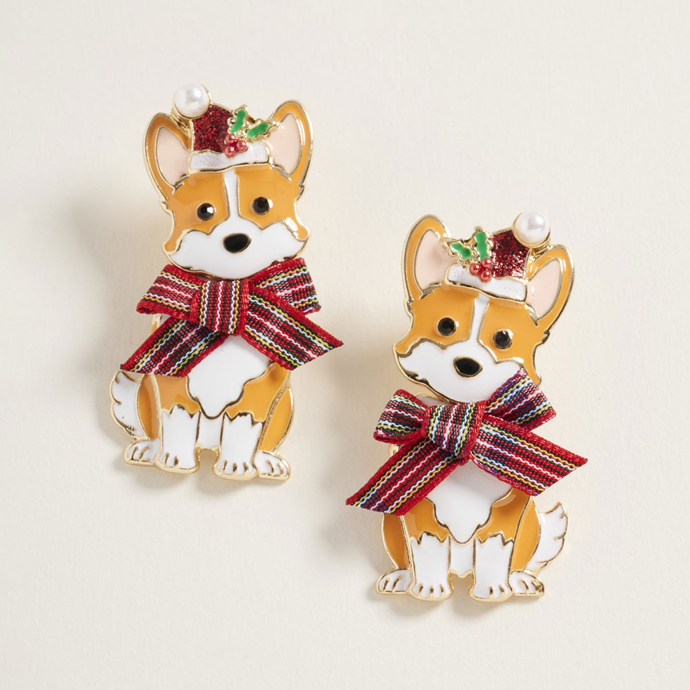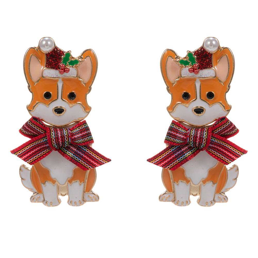 Details • Size : 1.2" X 1.8" • Titanium Post Back • Adorable corgi earrings with holiday hat and bow design, perfect for adding a playful and festive touch to your Christmas outfits or gifting to dog lovers during the holiday season. • Lead and Nickel Compliant • Hypoallergenic