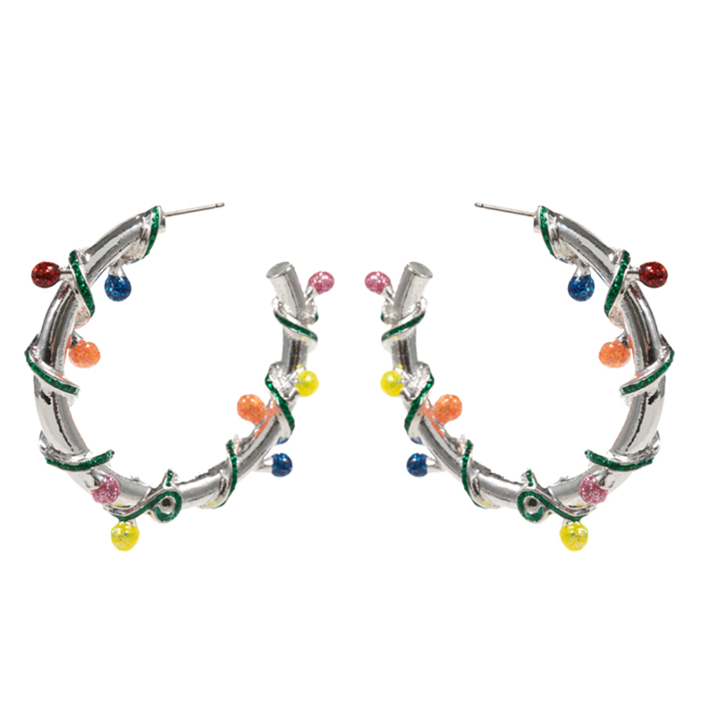 Details • Size : 1.25" X 1.25" • Titanium Post Back • Add a playful touch to your look with these festive hoop earrings adorned with vibrant multicolor beads. Perfect for parties, holidays, or brightening everyday outfits with a fun, stylish vibe. • Lead and Nickel Compliant • Hypoallergenic