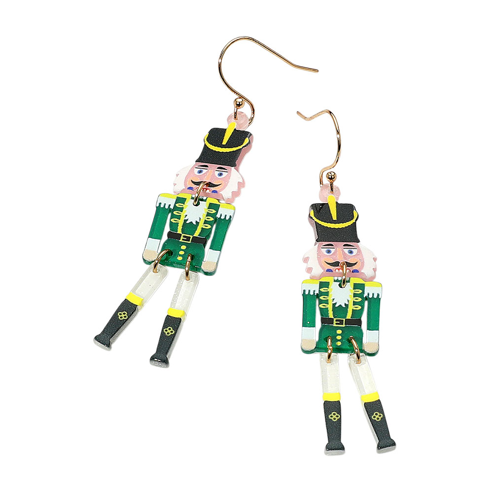 Details • Size : 0.6" X 2.6" • Fish Hook Back • Add a festive sparkle to your look with these glitter nutcracker drop earrings. Their playful design brings holiday charm and fun to your outfit, making them ideal for parties, events, or seasonal gifting. • Lead and Nickel Compliant