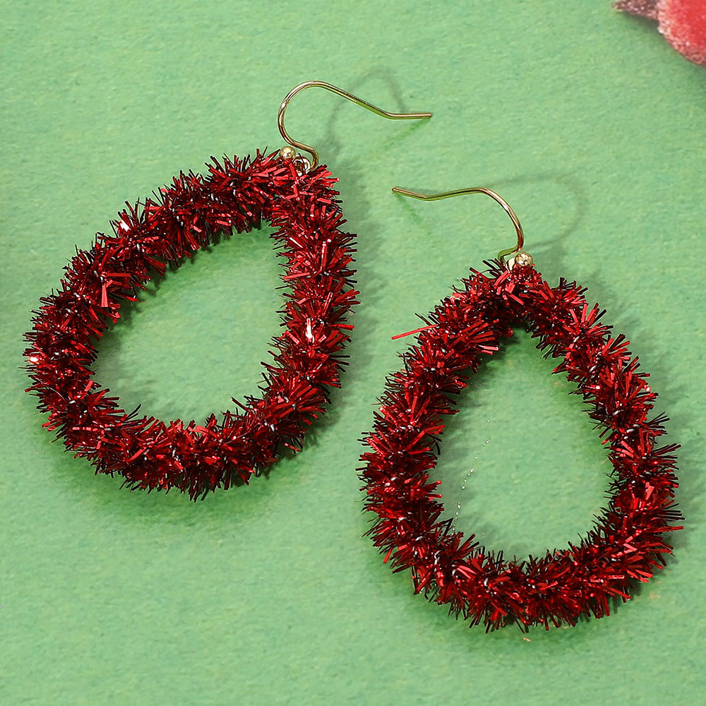 Details • Size : 1.75" X 2.1" • Fish Hook Back • Celebrate the season in style with these festive tinsel hoop earrings. Featuring a bold teardrop shape and sparkling texture, they're perfect for holiday parties, themed events, or gift exchanges. • Lead and Nickel Compliant