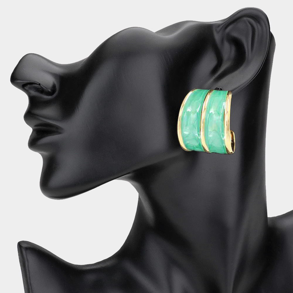3PCS - Semi Precious Stone Metal Ball Stretch Bracelets