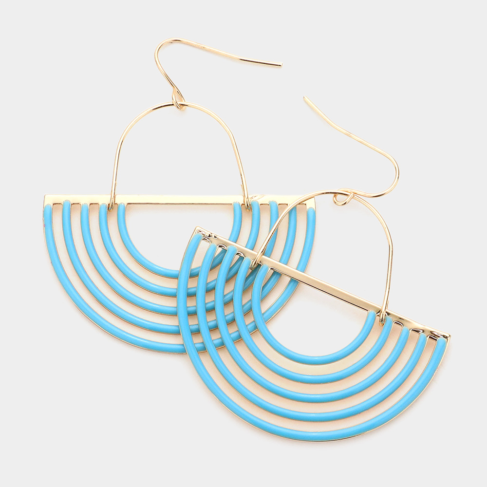 Oversized Enamel Painted Rim Hammered Metal Flower Earrings