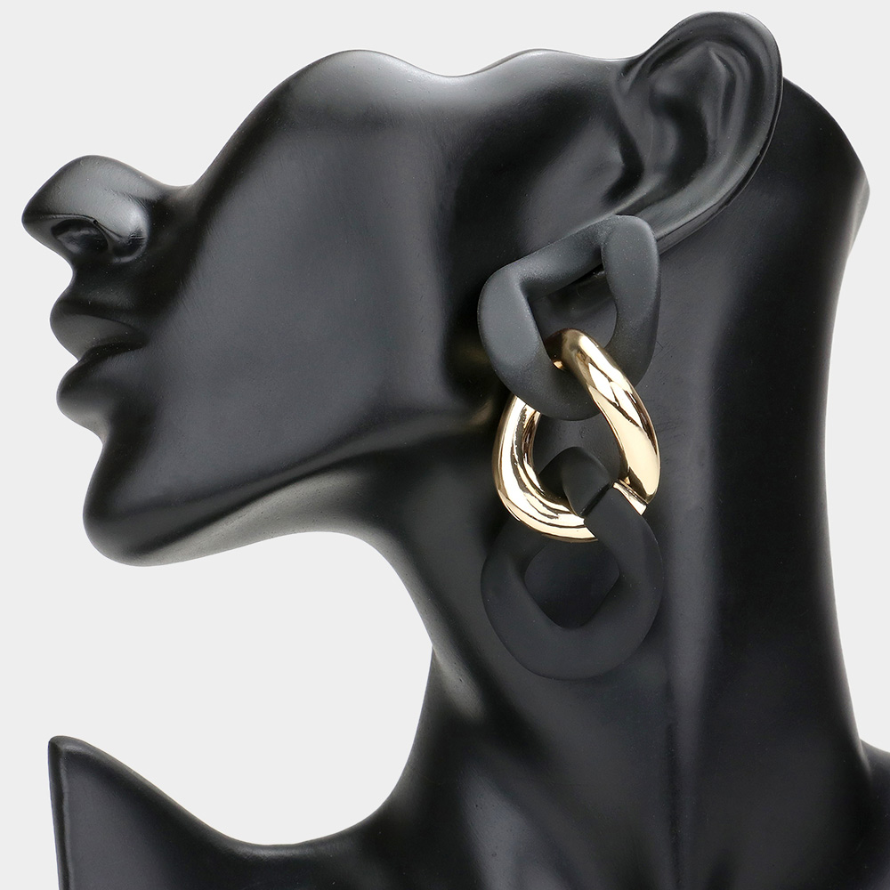 Tweed Fabric Metal Chain Link Triple Layered Bib Necklace