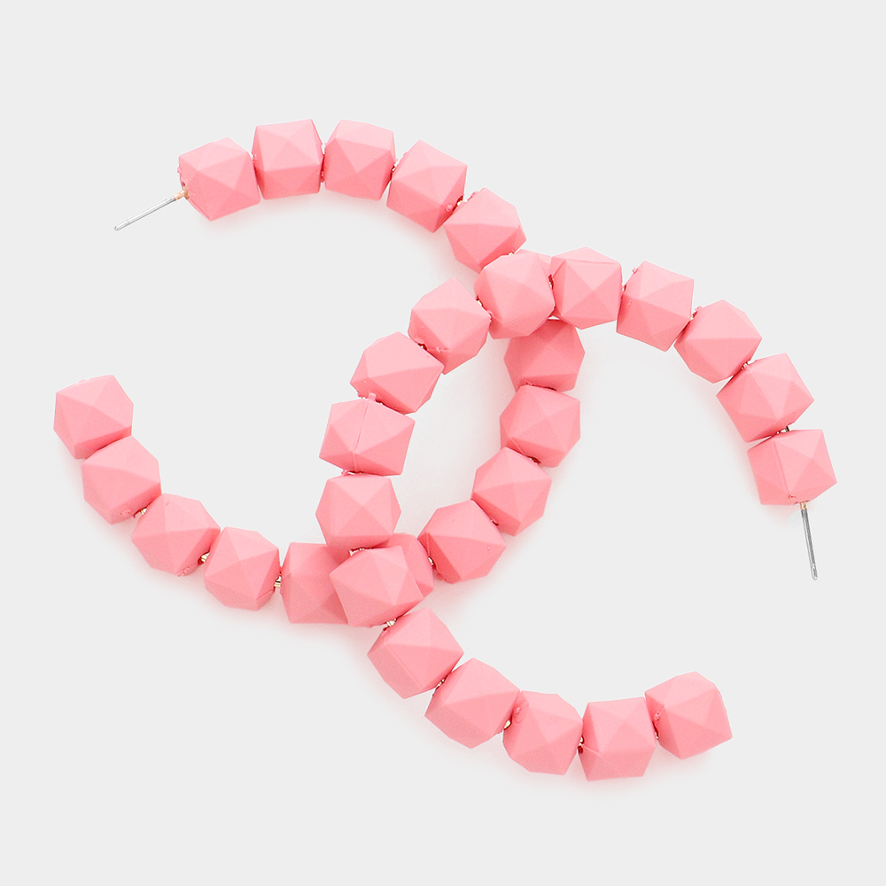 Colored Faceted Ball 2.6 Inch Hoop Earrings