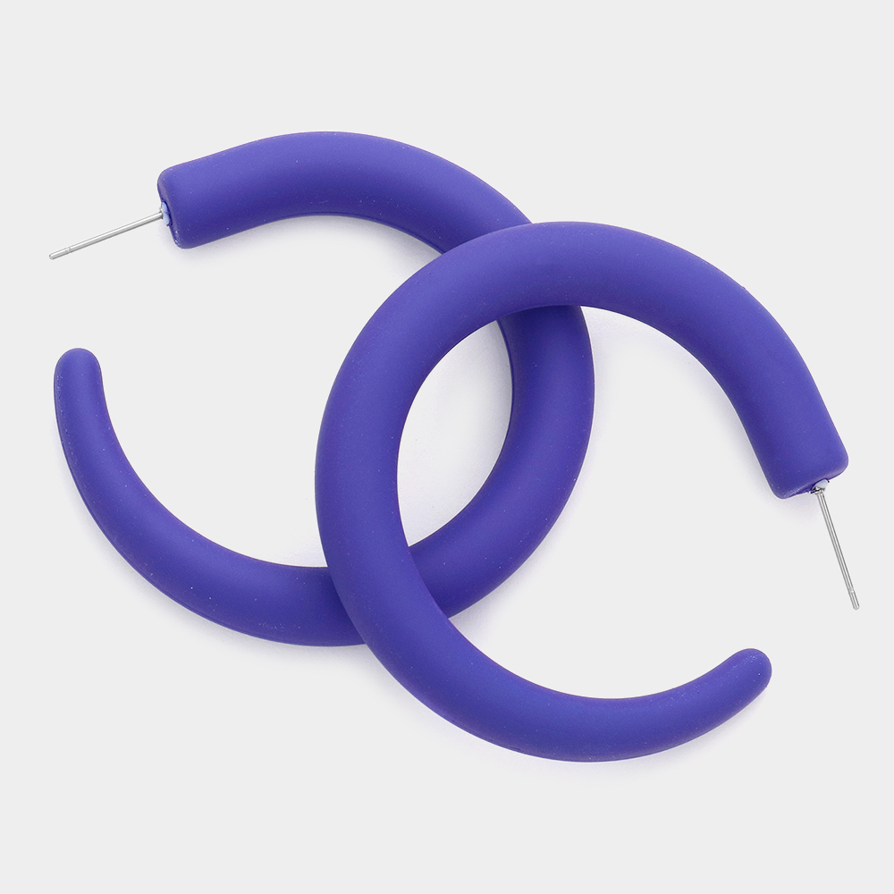 2.7" White Gold Dipped Textured Aluminum Pin Catch Hoop Earrings