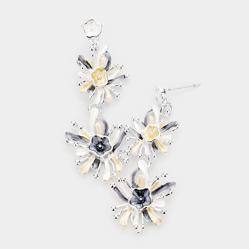 Floral Stone Cluster Drop Dangle Evening Earrings