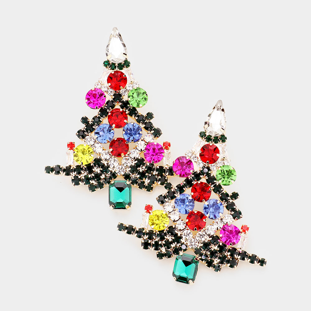 Rhinestone Embellished Bow Pointed Rudolph Dangle Earrings