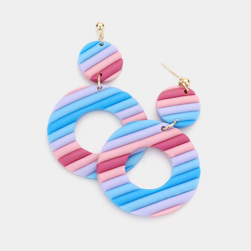 Colorful Open Round Polymer Clay Link Dangle Earrings