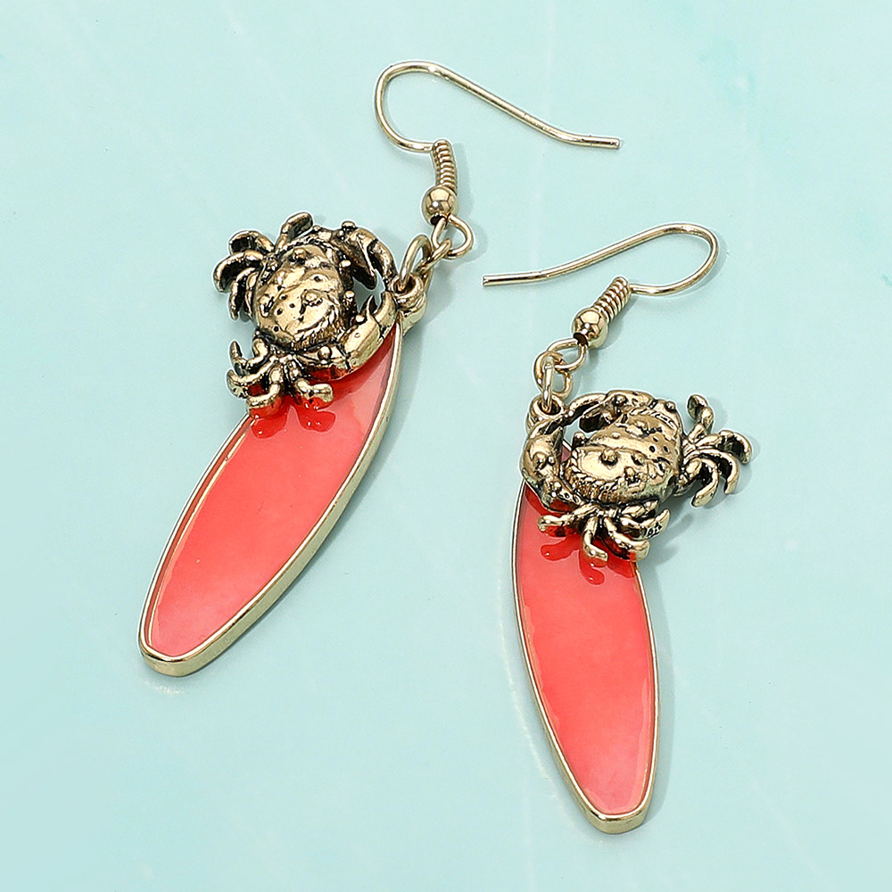 Details • Size : 0.75" X 2.5" • Fish Hook Back • Bold crab charm earrings with glossy teardrop-shaped accents. A statement piece perfect for beach outings or adding a fun nautical touch to your summer look. Lightweight and eye-catching design. • Lead and Nickel Compliant
