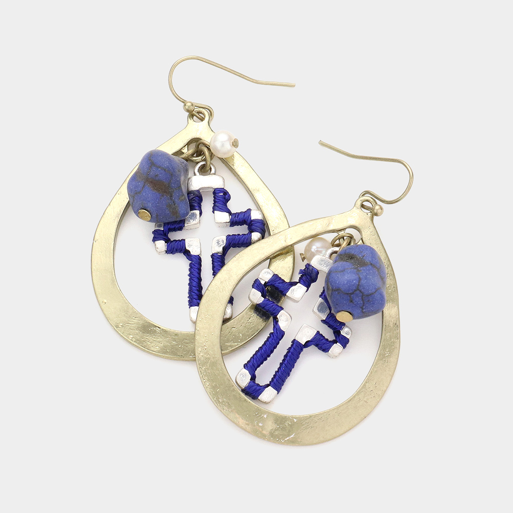 14K Gold Dipped CZ Stone Cross Stud Earrings