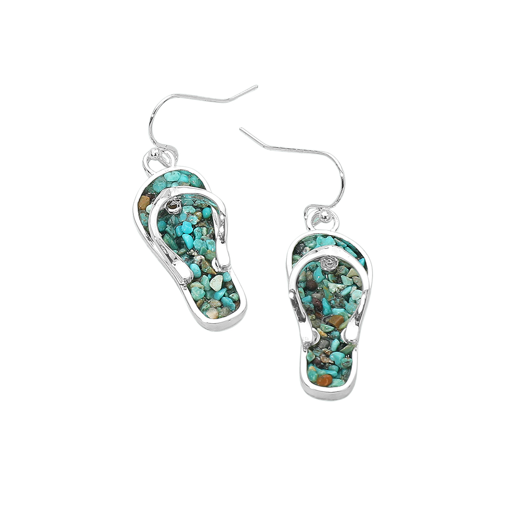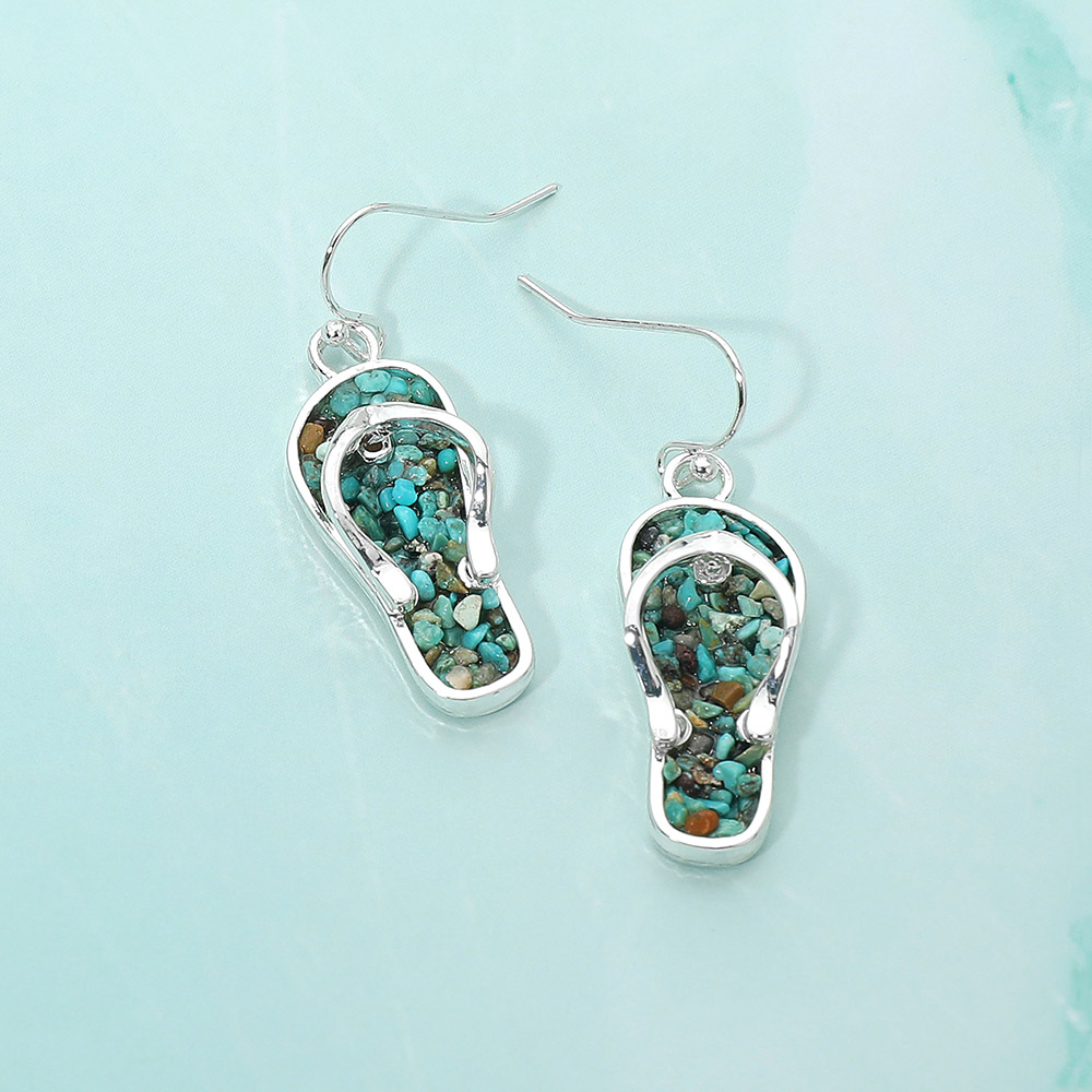 Details • Size : 0.5" X 1.5" • Fish Hook Back • Playful flip flop dangle earrings inspired by beach and vacation style. Designed with eye-catching texture and lightweight movement, they add a fun accent to casual outfits, resort wear, and summer collections. Ideal for beach boutiques, gift shops, and seasonal assortments seeking cheerful novelty accessories. • Lead and Nickel Compliant