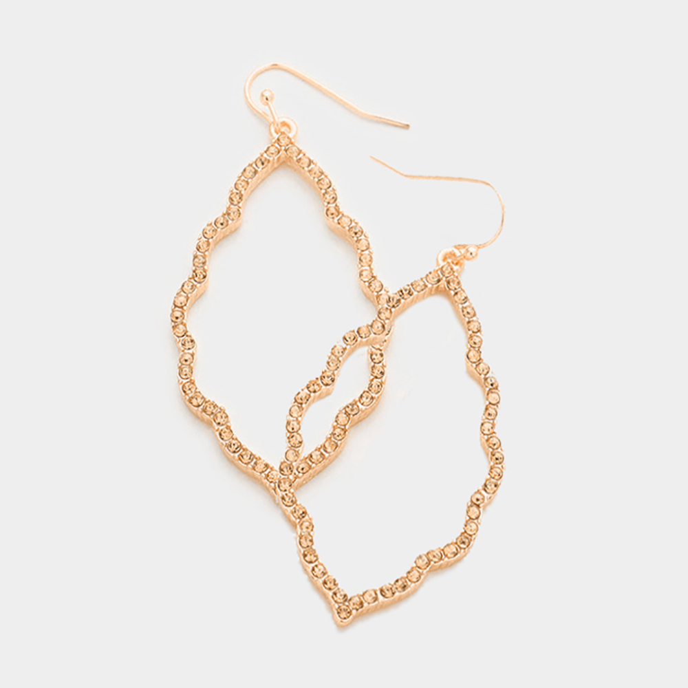 Emerald Cut Stone Accented Rhinestone Fringe Dangle Evening Earrings