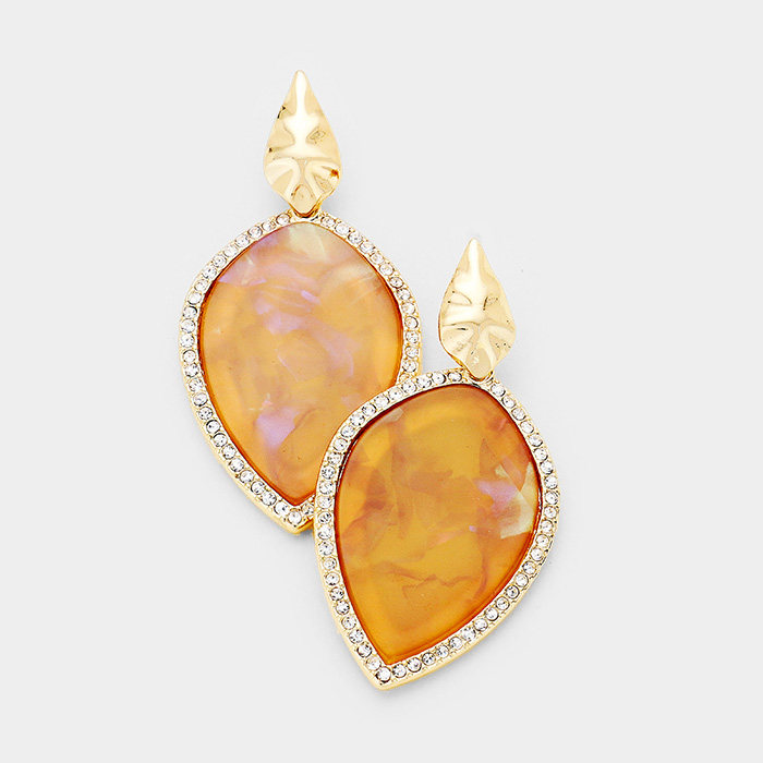 Crystal Rhinestone Trim Celluloid Acetate Dangle Earrings