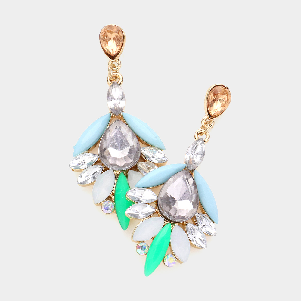 Rhinestone Paved Fringe V Shape Necklace Jewelry Set