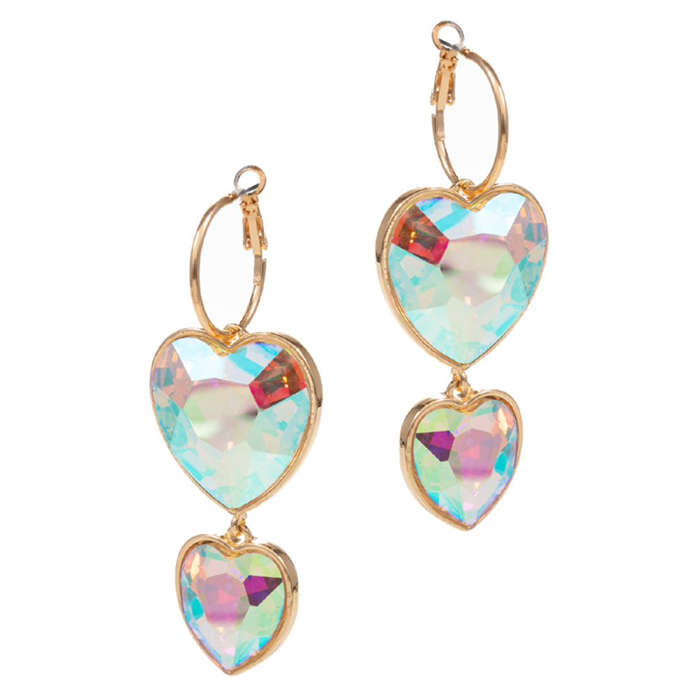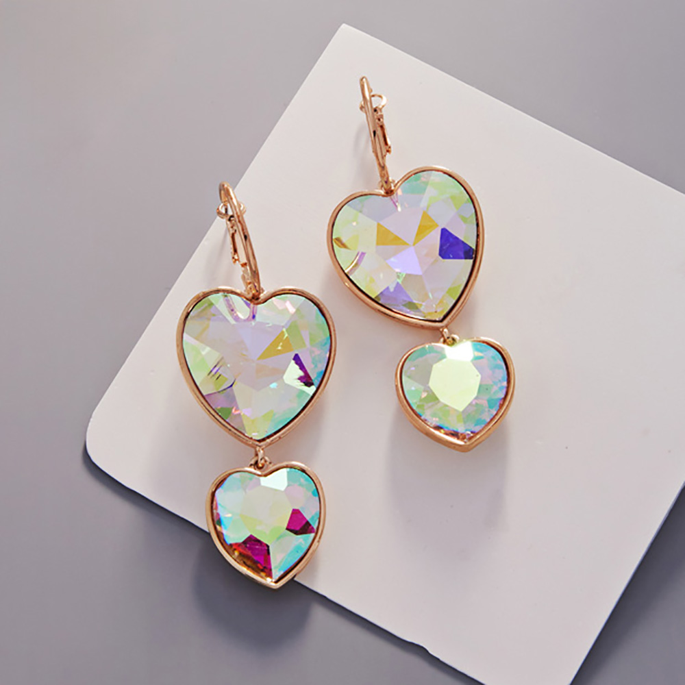 Heart Rhinestone Pave Fringe Down Evening Earrings