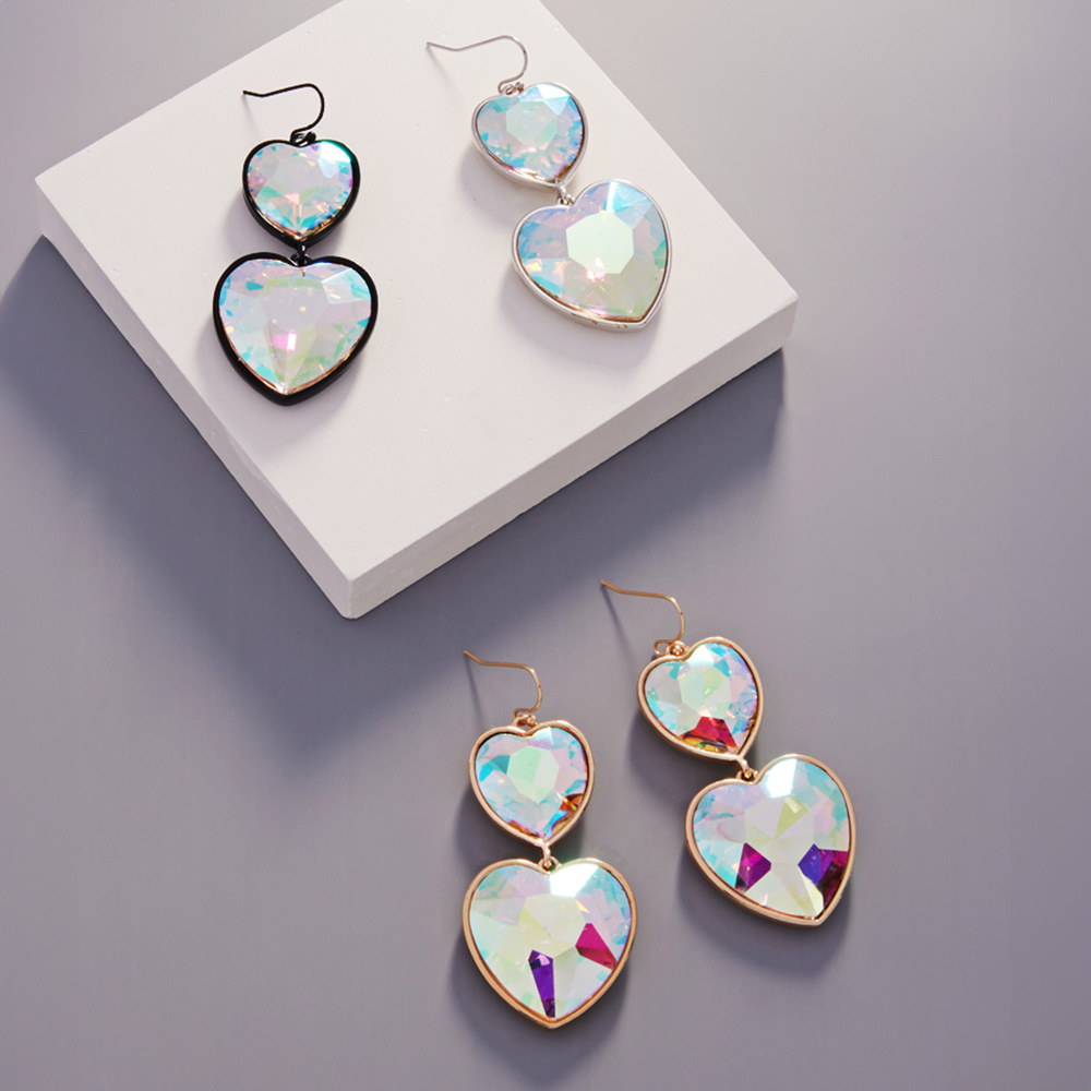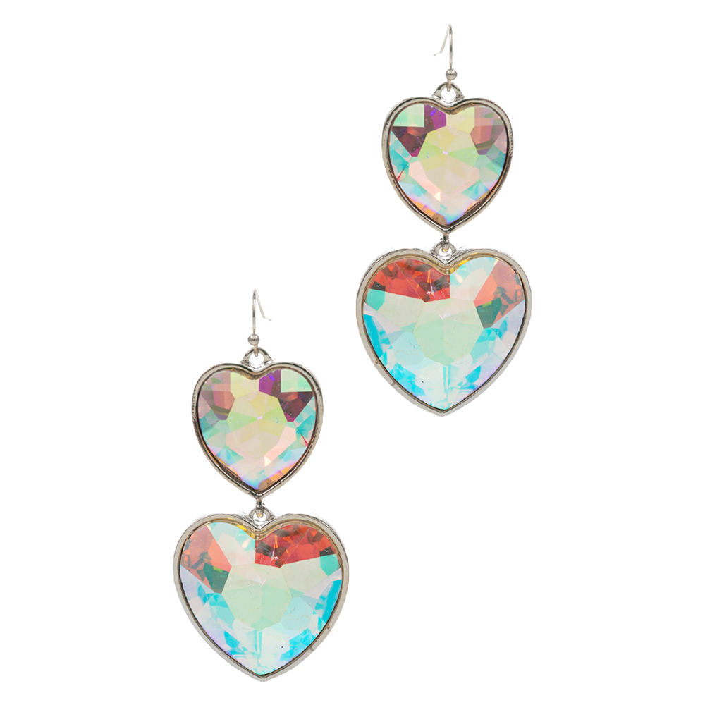 Crystal Stone Double Heart Link Dropdown Earrings