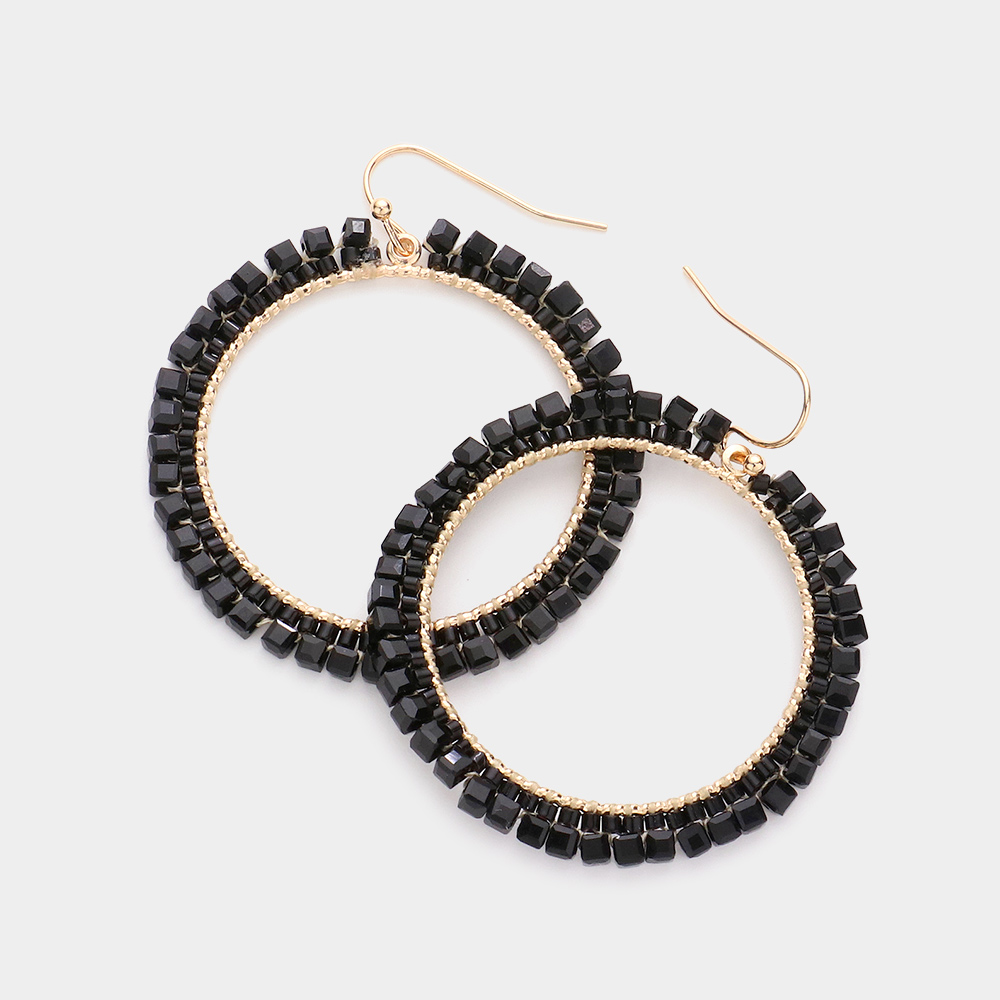 Cube Bead Trimmed Open Circle Dangle Earrings
