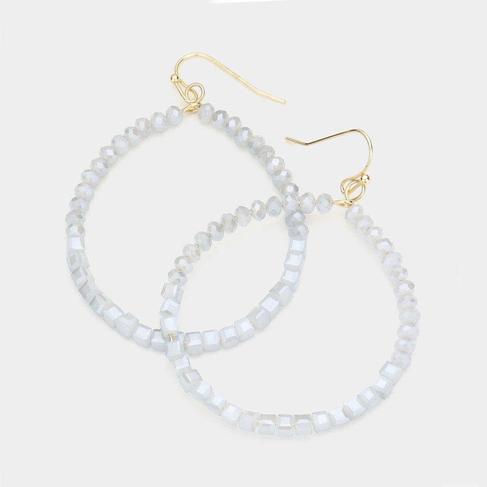 Cube Faceted Beaded Open Circle Dangle Earrings