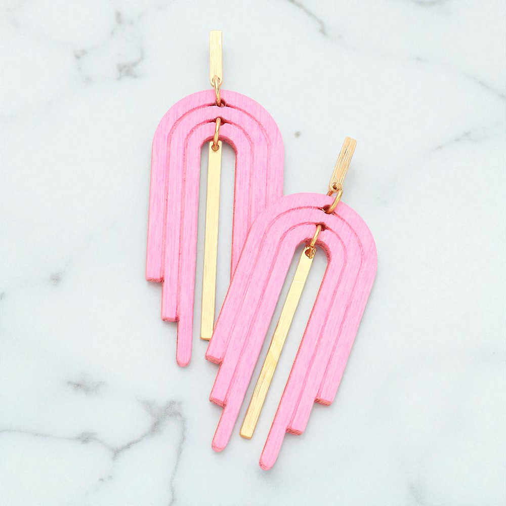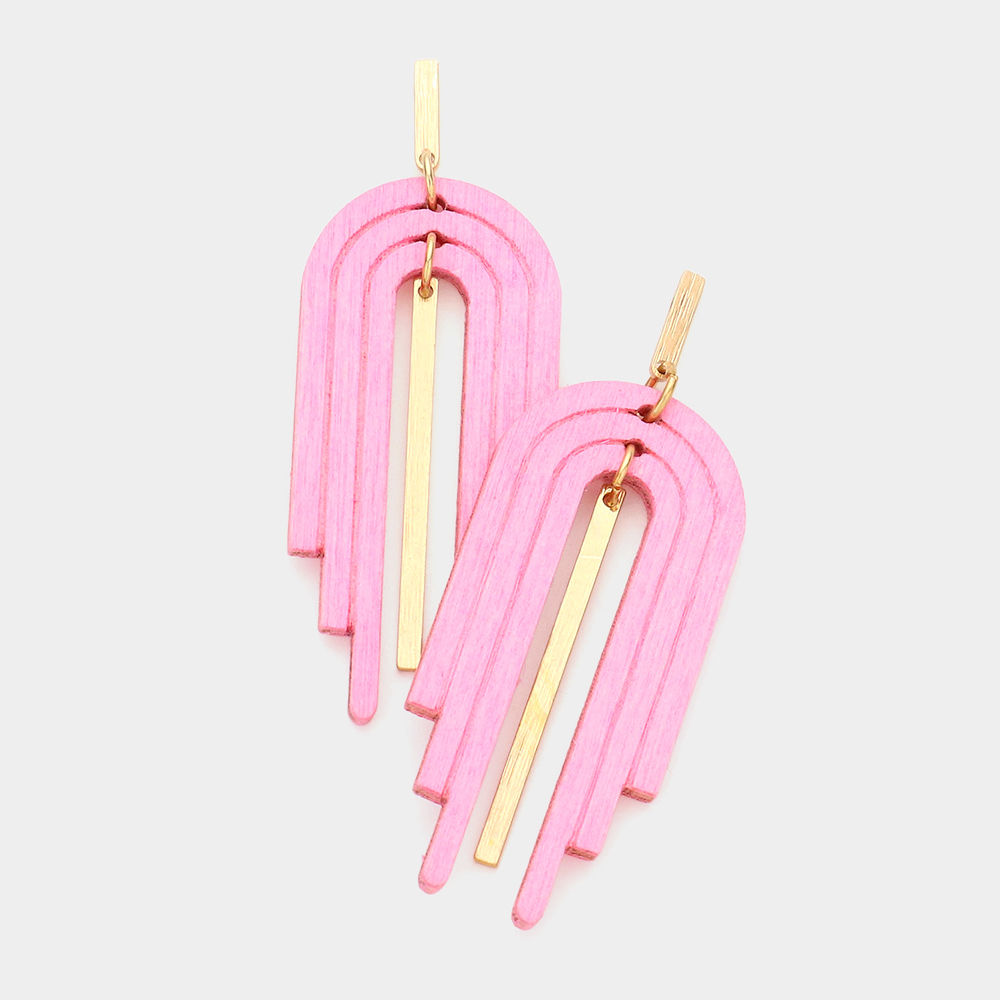 Faceted Bead Wrapped Open Wood Circle Dangle Earrings