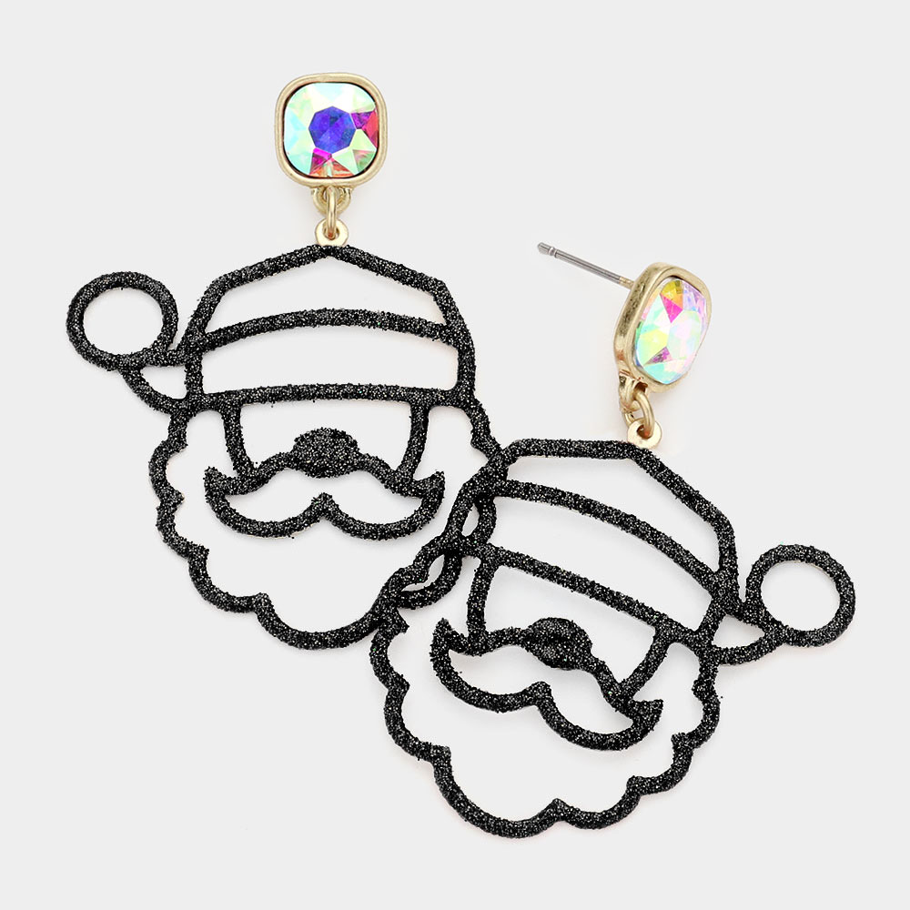 Cushion Square Stone Glitter Santa Claus Dangle Earrings