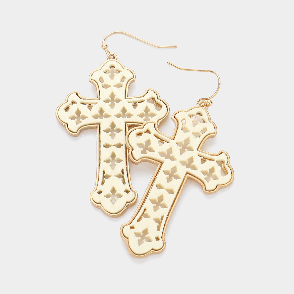Cutout Wood Cross Dangle Earrings